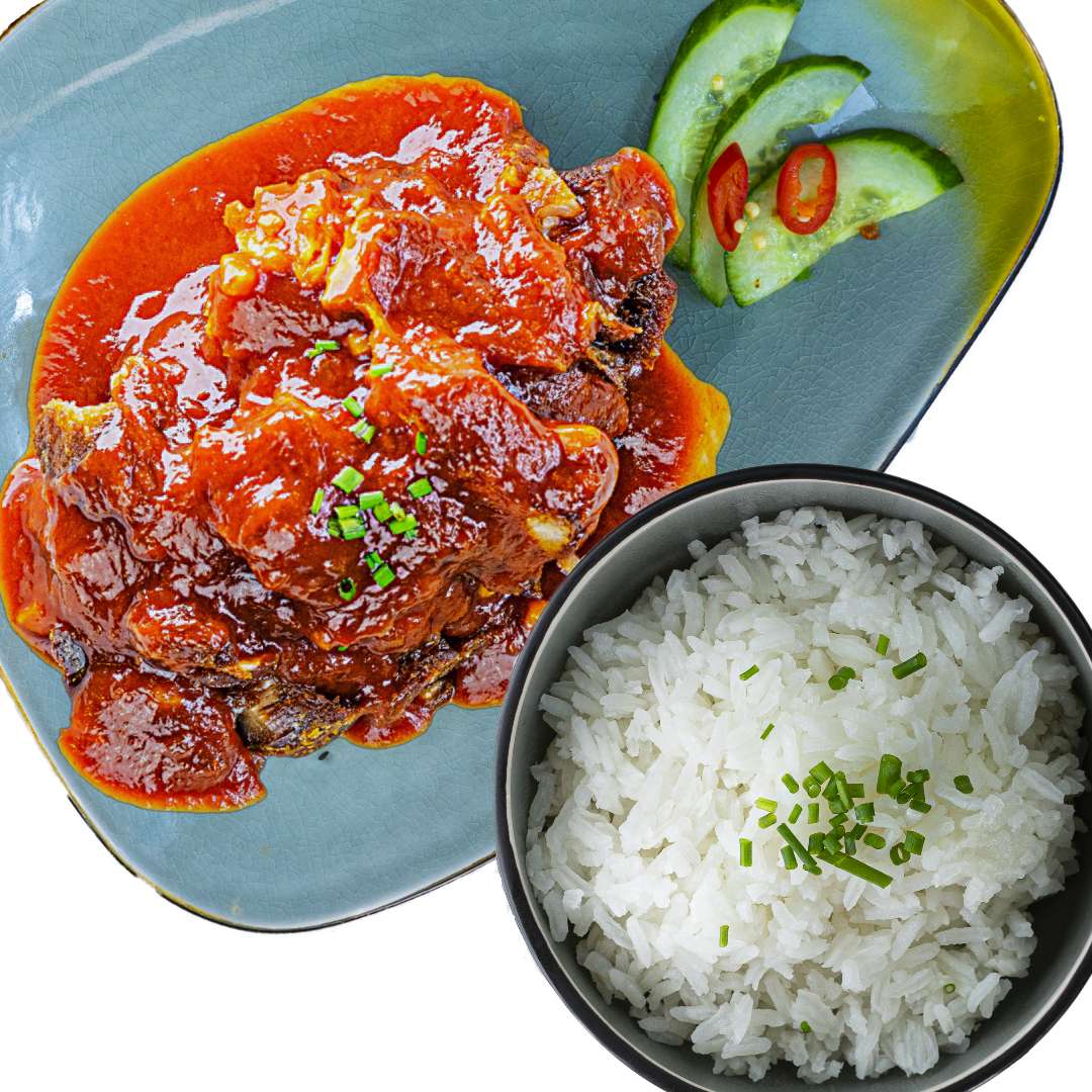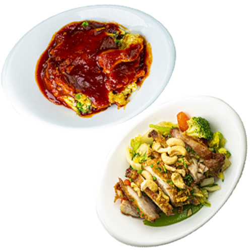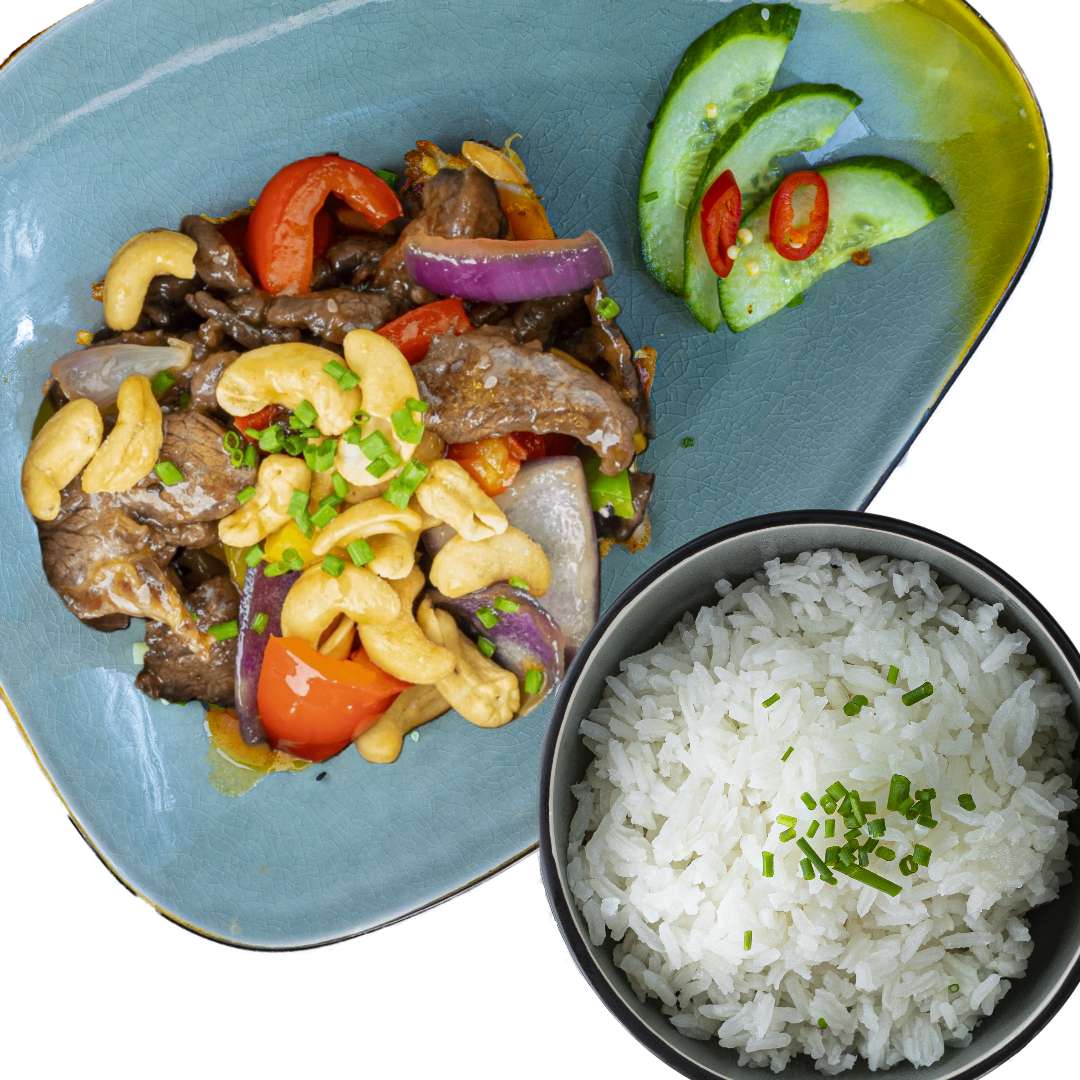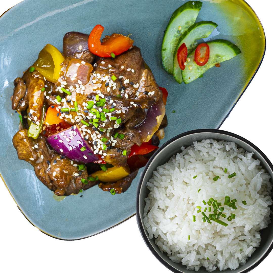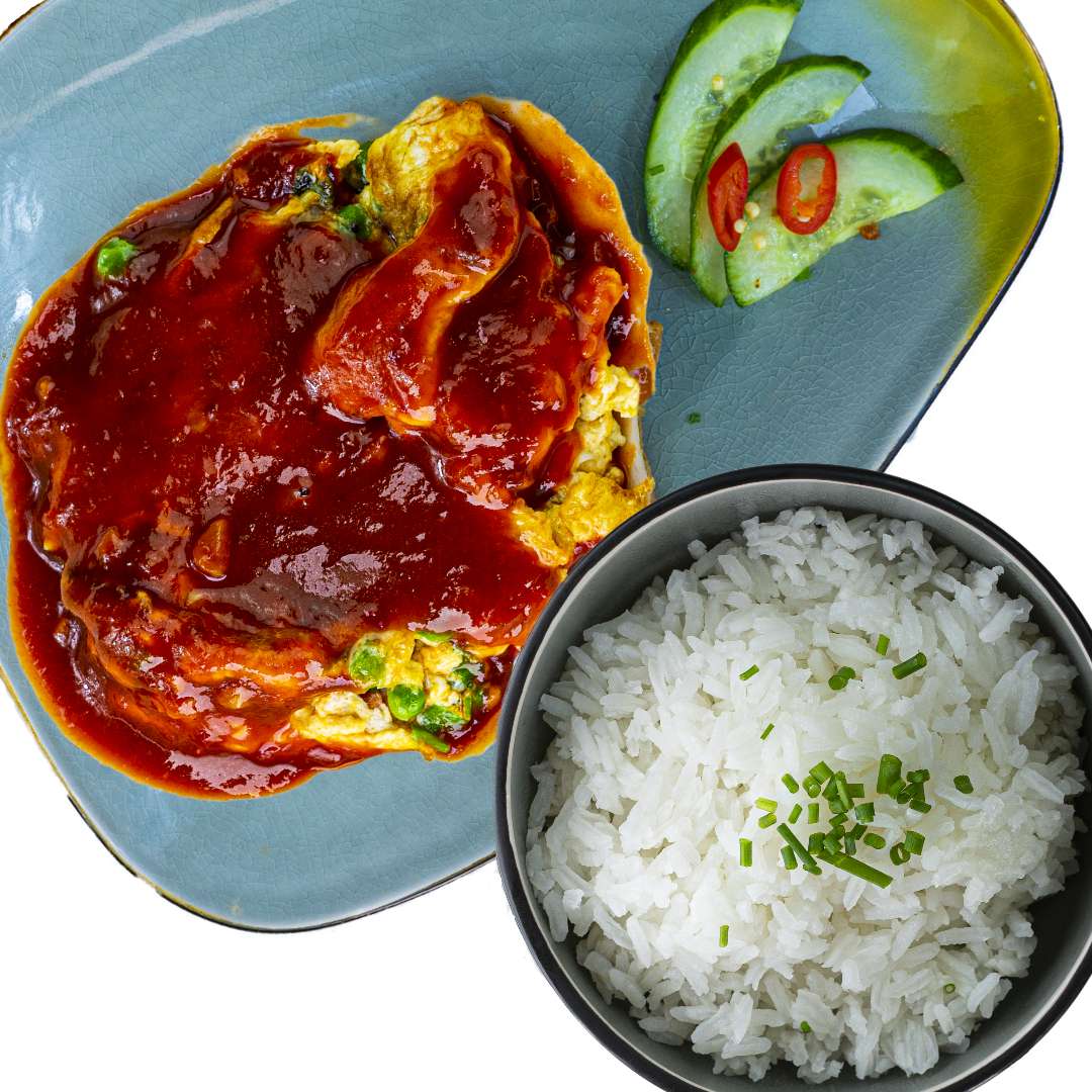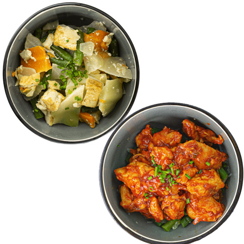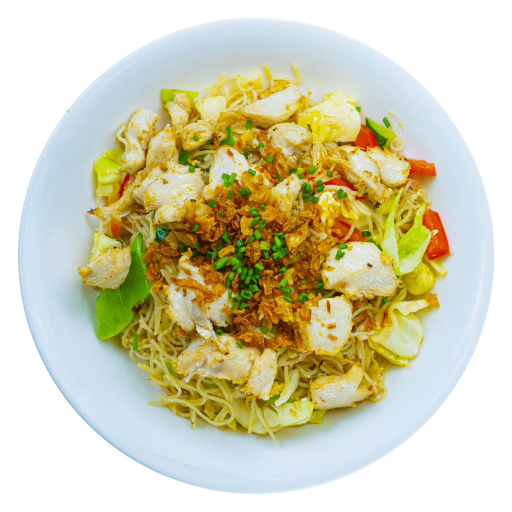 Kies uit: Nasi, Tjauwmin (dunne bami), Dikke bami (Javaans), Witte rijst (Thaise pandan), Nasi met groenten, Tjauwmin met groenten en meer.