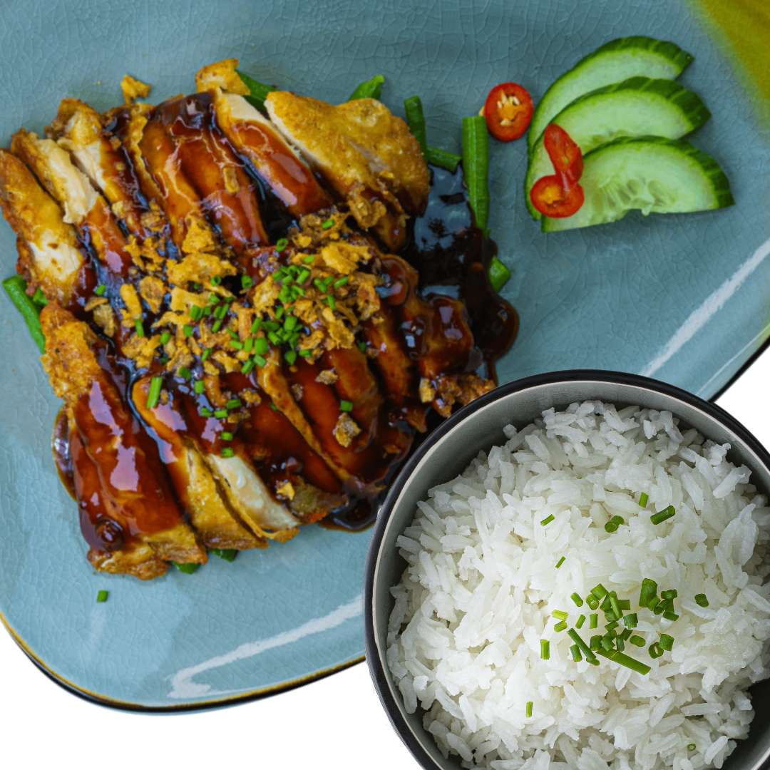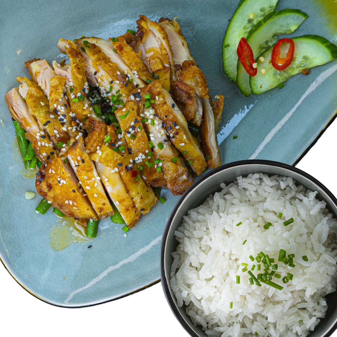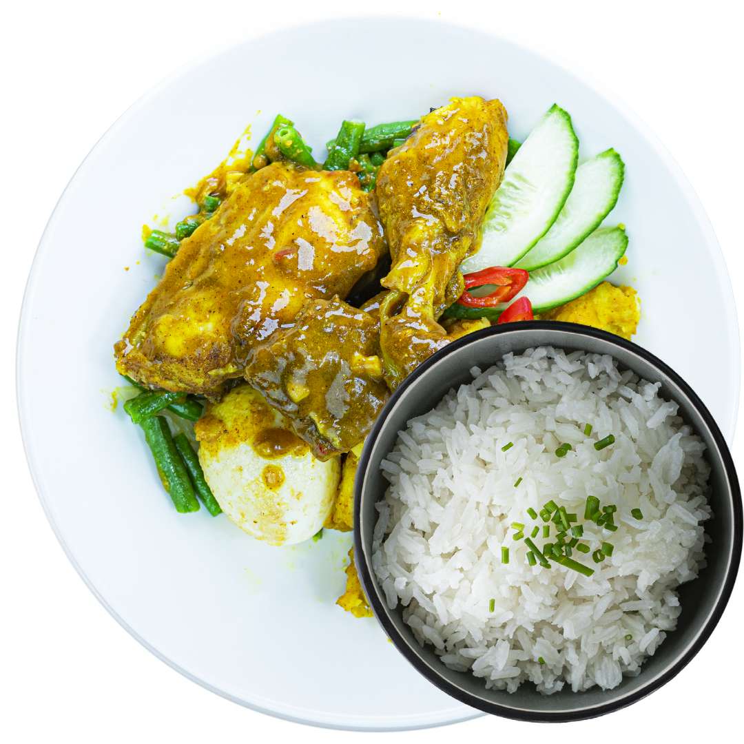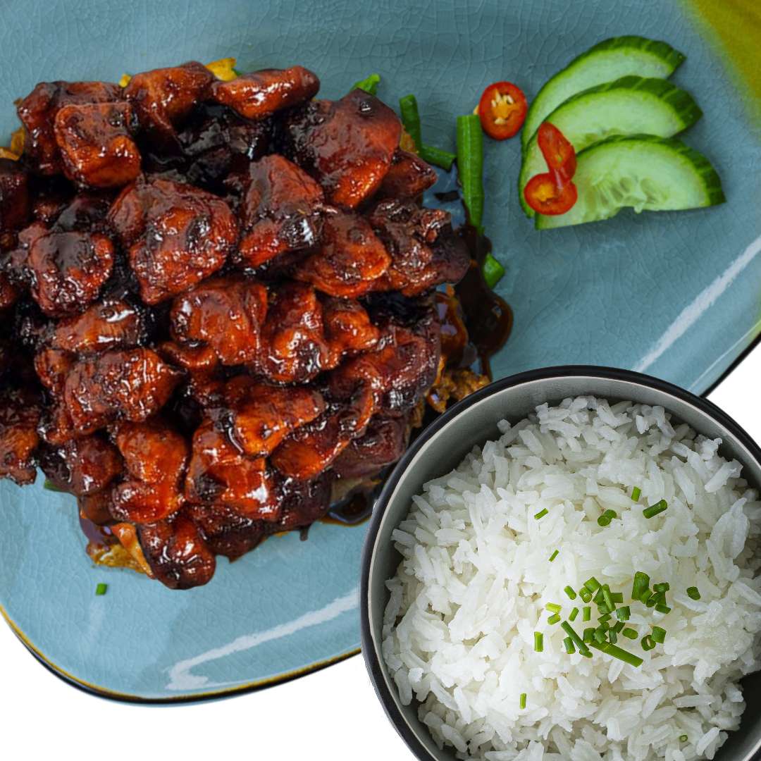 Kies uit: Kipkerrie, Hete kip, Ketjap kip (dijfilet), 250cc (klein rond bakje), 500cc, 1000cc