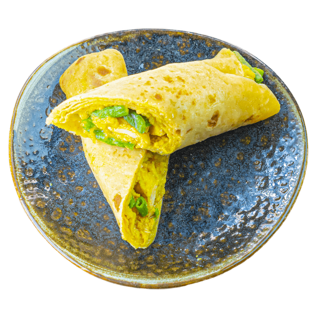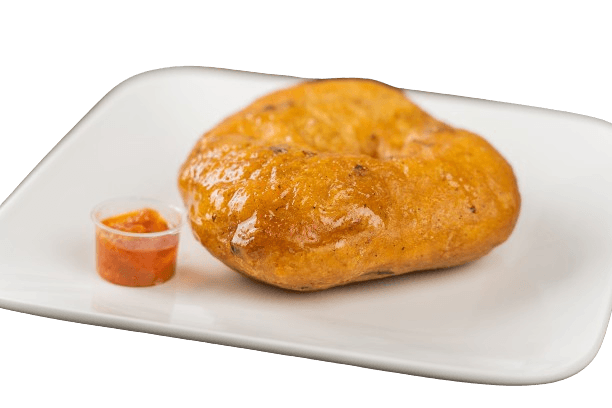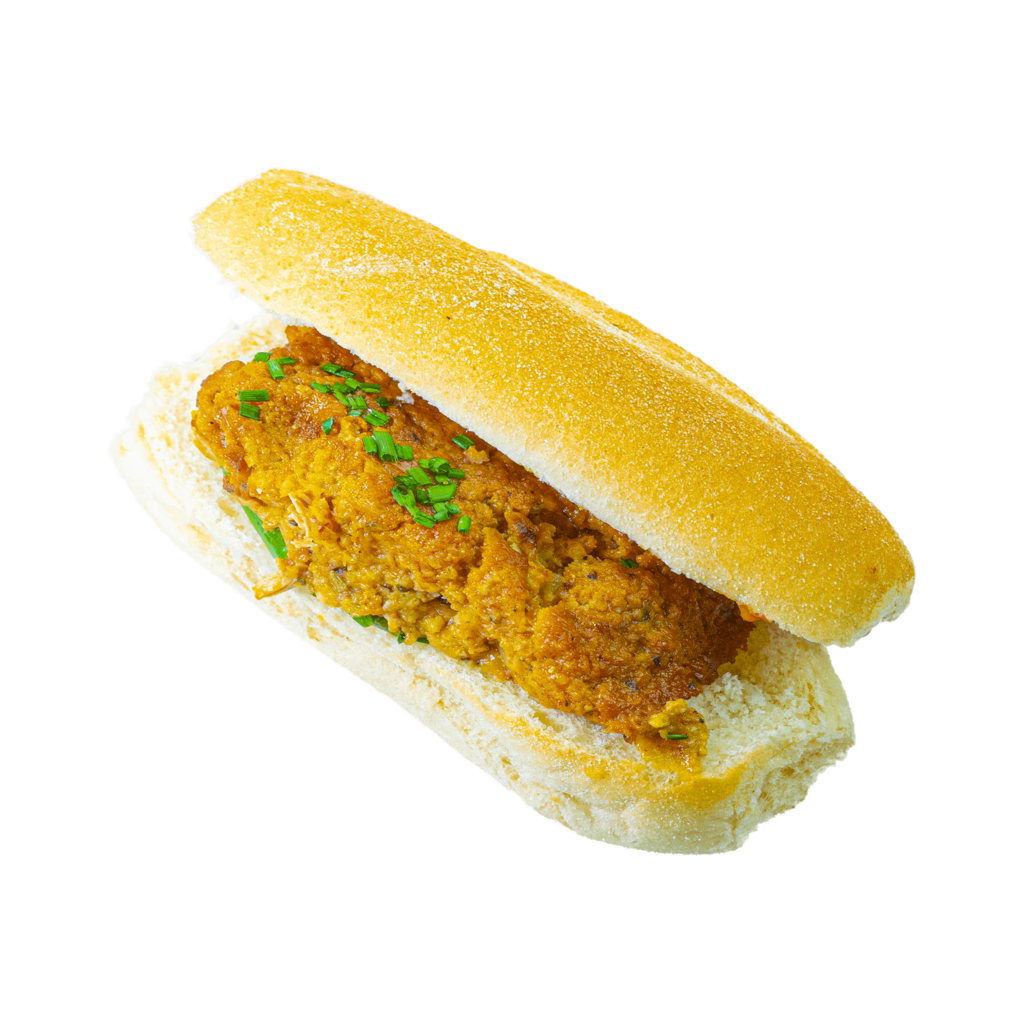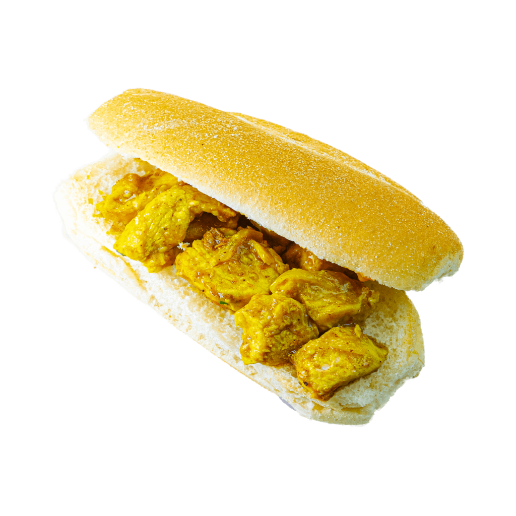 Kies uit: Geen vulling, Kipkerrie, Hete kip, Lamsvlees, Bakkeljauw, Rundvlees
