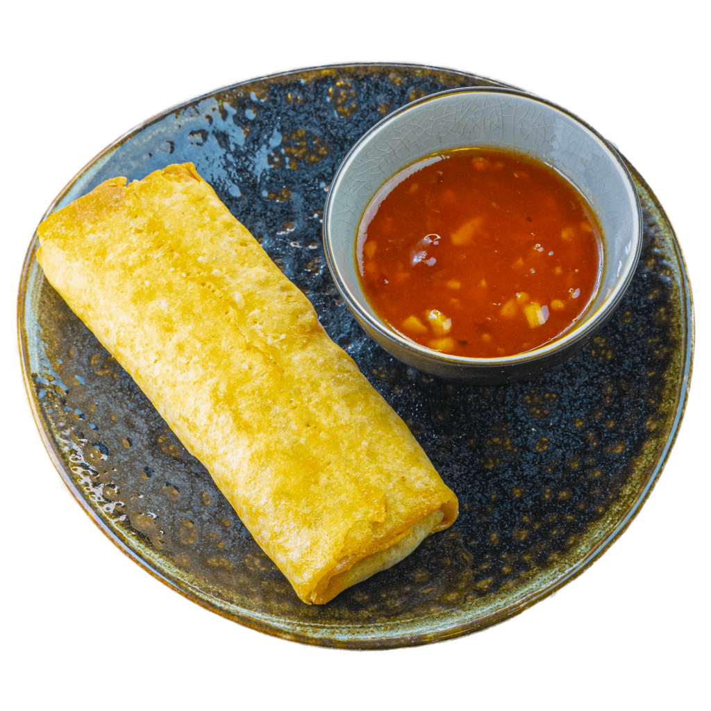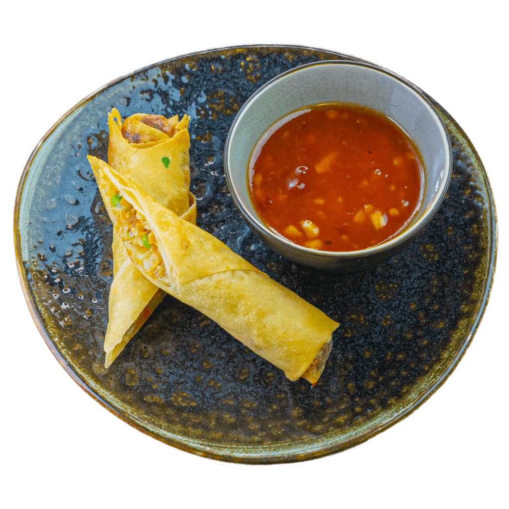 Viernamese loempia gevuld met groenten en kleine stukjes kip