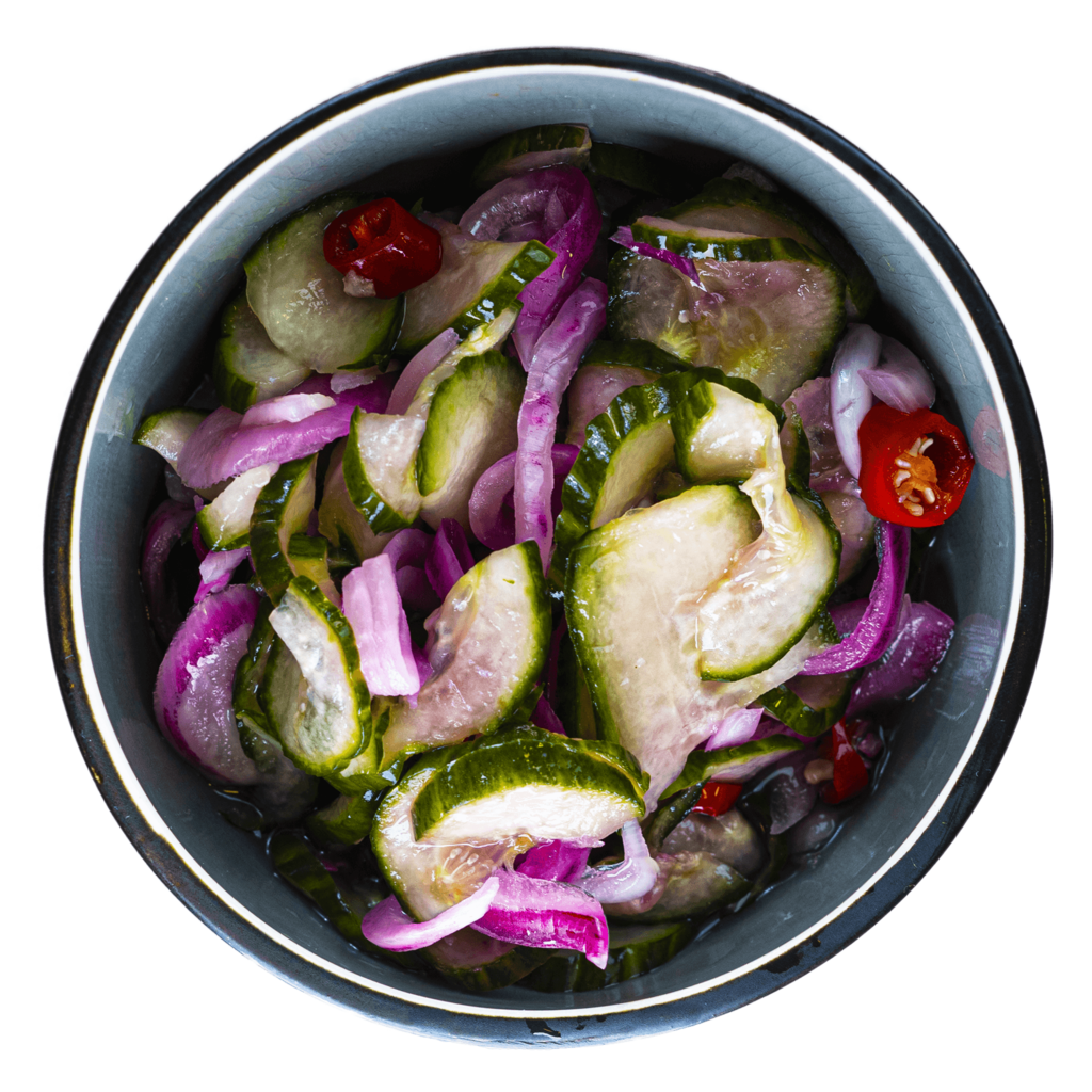Kies uit: Geen pika, Pika, geen zuur, cupje komkommerzuur, 2 cupjes komkommerzuur, 250cc komkommerzuur en meer.